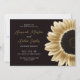 These bold but elegant 7" x 5" wedding invitations feature a big sunlit sunflower with customisable placeholders that include the introduction, "Together with their families," wedding couple first and last names, "for their wedding," wedding date, time, venue location and "reception to follow."
