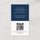 White and dark blue or custom colour, modern, professional business card design with template fields for name, company name/title, logo, photo, QR code and contact information. Change background colour, move and resize elements with the customisation tool.