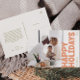 Send warm wishes this holiday season with this unique and cute, bold modern full photo happy holiday postcard. Its simple and minimalist design features boho-inspired elements in light pink, pastel coral, sage green, blush, and peach hues. Celebrating the festive spirit of December, this design brings a cheerful and fun touch to any occasion. The bright pale seasonal colours and creative wording make it a perfect way to spread happiness and cheer among friends and family this winter!