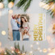 Bold Modern Full Photo Merry Christmas Gold Foil Holiday Postcard