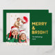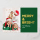 Send warm wishes this holiday season with this unique and cute, bold modern green one photo merry and bright gold foil holiday card. Its simple and minimalist design features boho-inspired elements in gold foil. Celebrating the festive spirit of December, this design brings a cheerful and fun touch to any occasion. The gold seasonal colour and creative wording make it a perfect way to spread happiness and cheer among friends and family this winter!