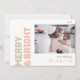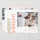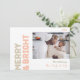 Send warm wishes this holiday season with this unique and cute, bold modern merry and bright four photo holiday card. Its simple and minimalist design features boho-inspired elements in light pink, pastel coral, sage green, blush, and peach hues. Celebrating the festive spirit of December, this design brings a cheerful and fun touch to any occasion. The bright pale seasonal colours and creative wording make it a perfect way to spread happiness and cheer among friends and family this winter!