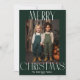 Celebrate the season with our modern trendy photo Christmas Card! This card has a white script photo design. Add a personal greeting message at the back.