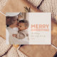 Send warm wishes this holiday season with this unique and cute, bold modern Merry Christmas one photo holiday card. Its simple and minimalist design features boho-inspired elements in light pink, pastel coral, sage green, blush, and peach hues. Celebrating the festive spirit of December, this design brings a cheerful and fun touch to any occasion. The bright pale seasonal colours and creative wording make it a perfect way to spread happiness and cheer among friends and family this winter!
