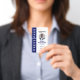 Bold and modern navy blue press pass photo identification badge. The design features "Press Pass" displayed along the side for easy view and identification. The photo is displayed in a circle frame to create a modern look. Customise with logo, photo, job title, joined/valid date and ID number. The reverse side features navy and white design with a logo and address. The colour can be changed to any colour to suit your brand, simply click personalise and click to customise further.