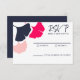 Bold Modern Navy, Pink Ginkgo Leaves Wedding RSVP