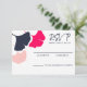 Add the perfect RSVP card or response card to your wedding invitation package. Make a statement with bold colours and a clean and simple graphic. These RSVPS feature illustrations of ginkgo leaves in navy blue, light blush pink and a bright coral tinged magenta.