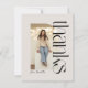 Bold and modern, this one-photo graduation thank you note is the perfect way to show your appreciation for graduation gifts and support. Featuring an arched photo on the front, a bold modern "thanks" and custom signature script, this design also has room on the back for a typed message or it can be left blank for the graduate to hand write personalised thank you notes. This graduation thank you card design is part of a collection by Lea Delaveris Design where you can find coordinating graduation announcements, graduation party invitations and supplies and more colours and styles.