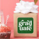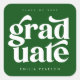 Bold, modern and stylish graduation sticker feature simple modern type on a green background with the graduate's name and graduating class.