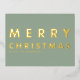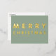 Bold Modern Typography Sage Green Merry Christmas Foil Holiday Postcard
