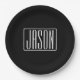Bold & Modern Your Name or Word | White On Black Paper Plate
