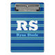 Bold Monogram & Name, Lt. Teal Lines on Deep Blue Mini Clipboard