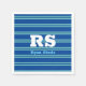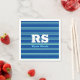Bold Monogram & Name, Lt Teal Lines on Deep Blue Napkin