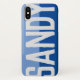 Christian name phone case. Have your choice of name shown boldly on a two-tone phone case. Example shows the name Sandy. Personalise with your choice of short name.