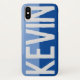Have your choice of name shown boldly on a two-tone phone case. Example shows the name Kevin. Personalise with your choice of short name.