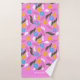 custom bold name monogram pink floral abstract pattern bath Towel . Cute feminine gift idea for women, friends, mothers, sisters, moms, girls for birthdays, christmas, mother's day. Unique and original vibrant floral pattern towel with pink, yellow, white and green colours, abstract shapes. Add name, monogram, firstname to this modern pink bath towel.