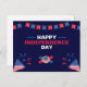 Celebrate the 4th of July with this vibrant postcard. Featuring bold "Happy Independence Day" text against a deep navy background, adorned with festive bunting and patriotic confetti, this postcard is perfect for sharing your holiday spirit. The front design includes dynamic red, white, and blue elements, making it a striking choice for Independence Day greetings. The back of the postcard offers personalizable text, allowing you to add your own special message for friends and family.