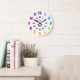 Featuring bright, bold, rainbow coloured numbers this fun wall clock indicates the minutes in black and the hours in colours to help kids learn how to tell time. Perfect for a classroom, school, teachers, doctor's office, day care, playroom, children's room and more!