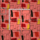 An abstract art design inspired by early 20th century mid century modern patterns, with geometric deformed squares in red, orange and yellow, on a bright orange background.