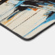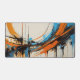Upgrade your workspace with this visually striking desk mat. The artwork showcases a powerful mid-century abstract composition with sweeping orange and blue curves and sharp industrial lines. It provides a smooth working surface while adding a highly professional, energetic, and creative vibe to your desk environment.