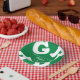 GRAD in bold white lettering curves around the edges of these green graduation paper bowls personalised for your graduate - perfect for serving snacks, salads, desserts and more. MATCHING items and more pre-done colour combinations in our store.
