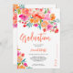 Boho orange floral graduation open house invitation featuring pretty hand painted orange, pink and yellow flowers watercolor illustration with a modern elegant script font , with bohemian greenery foliage. Perfect for Spring, summer outdoors garden party