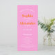 Bold pink and orange colourful Wedding Program. To modify the text, select «Details». For adjusting the text's position, font, or colour, click on «Edit using Design Tool».