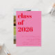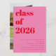 Celebrate the graduate in style with this bold and modern "Class of 2025" graduation party invitation with your grad's photo on the back. Featuring striking red text on a vibrant pink background, this design is perfect for a fun and memorable celebration. Easily customisable with the graduate’s name, date, and location details, this invitation sets the tone for an exciting event.