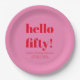 Bold Typography Pink and Red Modern 50th Birthday Custom Paper Plates