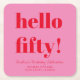 Bold Pink and Red Modern 50th Birthday Custom Square Paper Coaster