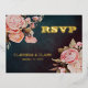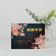Bold pink floral foil RSVP wedding post card. Striking florals on a romantic navy background.