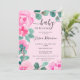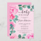 Bold pink green floral watercolor baby shower invitation with elegant script typography, watercolor on pink background.