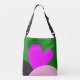 A bold and playful tote bag featuring a vibrant pink heart against a fresh green background.