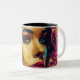 Bold Pink Hibiscus and Woman Abstract Portrait Two-Tone Coffee Mug