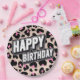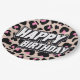 Bold Pink Leopard Happy Birthday Paper Plate