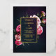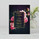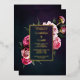 Bold pink moody peony floral wedding foil invitation. Striking pink and gold bold with navy toned background.