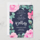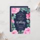 Bold pink navy floral watercolor photo wedding invitation