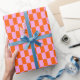 Bold Pink Orange Modern Geometric Check Pattern Wrapping Paper