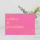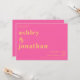 Modern minimal wedding invitation featuring bold typography in bright pink and orange colour style.