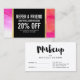 Coordinates with the Bold Pink Watercolors Makeup Artist Business Card Template by 1201AM. This referral card/discount card features a wash of bright pink watercolors for a beautiful brand identity. This design is part of a series of coordinating office supplies to help brand your makeup artist business. Customise the promotion for your own offering or discount.