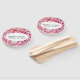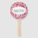 This program hand fan has a bold pink and white paisley design with tear drop shapes and daisy flowers. Customise your name and dates in the white oval with the template.