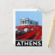 Celebrate the history of Athens, Greece, with this striking and dramatic postcard. The design features a bold, graphic illustration of the magnificent Parthenon standing atop the Acropolis. The abstract, vibrant red foreground contrasts sharply with the white temple and the patterned blue sky, creating a modern pop art feel. The bottom border features the classic Greek key pattern and the clear, block lettering declares "ATHENS". This card is perfect for art lovers, history buffs, or anyone who appreciates a unique, modern interpretation of a classical landmark.