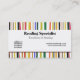 Modern colourful patterns geometric style business card with bold and creative vertical stripes of colour. Card is texted for reading teacher, but with little customisation will fit most professional occupations. Sleek photography, trendy logos , cool designs, unique illustrations, cute images and easy custom business cards by rozdesigns.