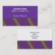 A bold design featuring a purple background with information in white lettering. A border of purple and gray diagonal stripes accents it. The back is white with the same purple and gray border accenting it. Customize with all of your business information as desired.