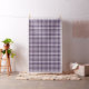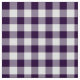 Stylish geometric fabric features a bold purple and white gingham pattern. Purple, lavender, and white squares form a bold, buffalo plaid.