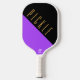 This fun pickleball design features a vibrant purple colour block with a black triangular edge block in one upper corner. The optional, tall slim "PICKLE" text can be personalised.
