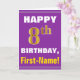 Bold, Purple, Faux Gold 8th Birthday w/ Name Card