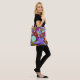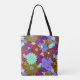 Bold purple green floral pattern and custom name tote bag