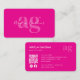 Bold QR Code Hot Pink Monogram Script Social Media Business Card