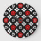 A bold red and black geometric circle pattern item with big red and white flowers inside each trendy mod style circle.